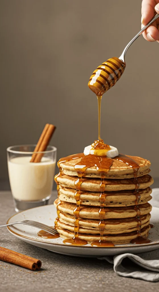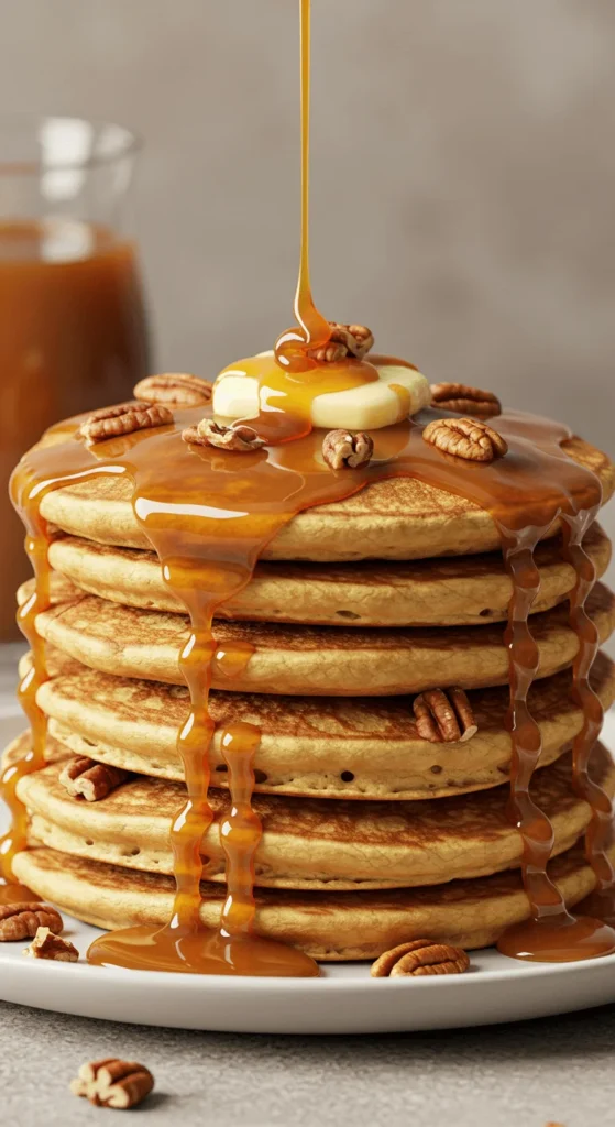 This recipe tastes like dessert in pancake form. Stir chopped pecans into the batter, then drizzle caramel or maple syrup on top. Toasting the pecans beforehand brings out their flavor. If pecans are expensive, use walnuts—they’re cheaper and still delicious. These pancakes feel indulgent but are easy to make with simple pantry swaps. They’re great for holiday brunch when you want something that feels special without much effort.