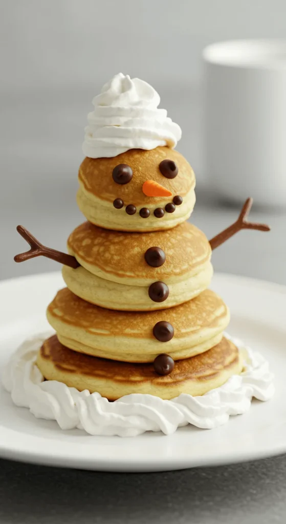 Kids will love these playful pancakes. Make one large, one medium, and one small pancake, then stack them like a snowman. Use chocolate chips or raisins for eyes and buttons. Add a carrot stick or pretzel for the nose, and you’ve got a holiday breakfast that feels like craft time. It’s fun, simple, and costs very little since you use what’s already in the pantry. Adults will smile just as much as the kids when these come to the table.