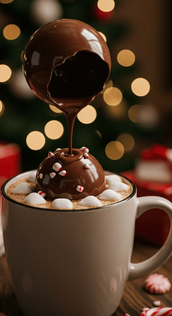 Hot cocoa bombs are as magical as they sound. Melt chocolate and coat silicone molds. Once set, fill with cocoa mix, marshmallows, and peppermint bits. Seal with more chocolate and decorate with festive drizzle or sprinkles.