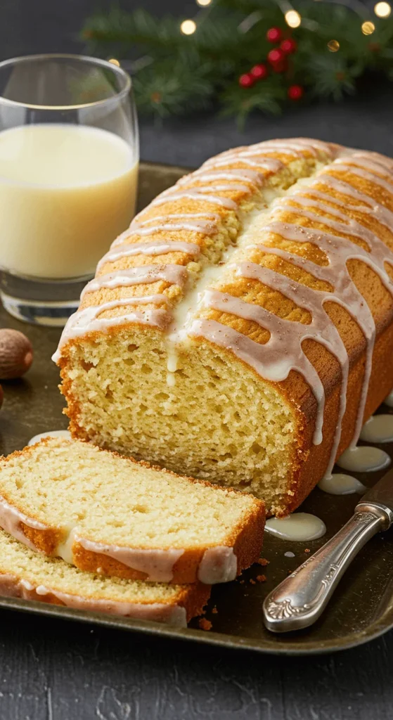 Eggnog lovers will enjoy this moist quick bread. The eggnog gives it creaminess and a festive flavor. Add a simple glaze made with powdered sugar and eggnog for extra sweetness. If eggnog is expensive, you can make a budget-friendly version at home with milk, sugar, and a pinch of nutmeg. Perfect for breakfast or dessert.