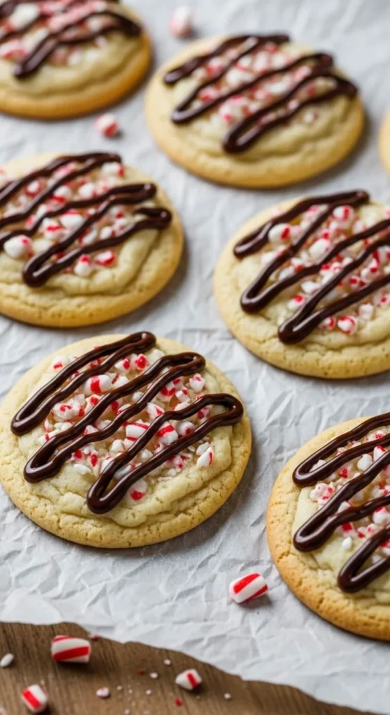 This cookie is half candy, half dessert dream. Bake a simple sugar cookie base, top with melted white chocolate, and sprinkle crushed candy canes. The minty crunch feels like the holidays in every bite. A great way to use leftover candy canes too.