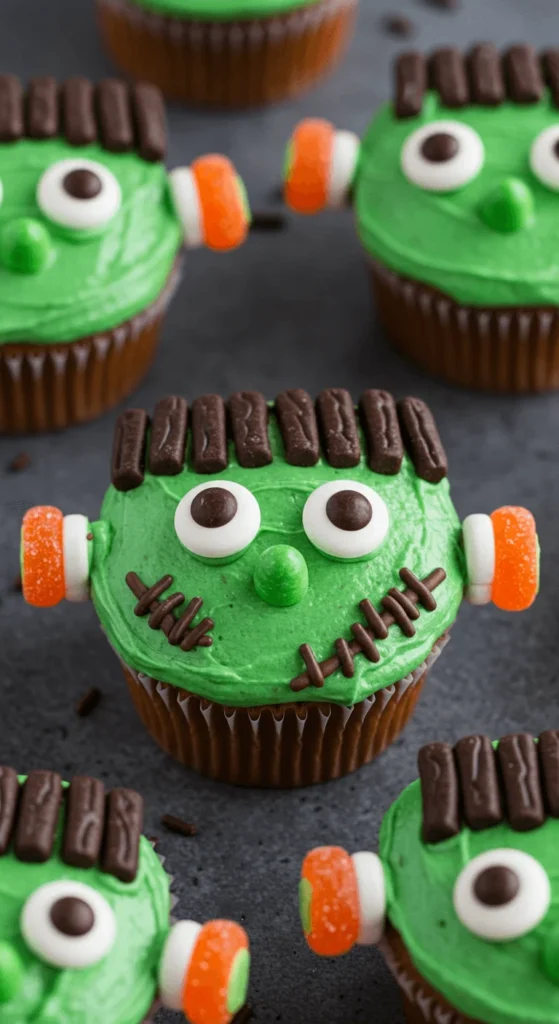 Bake simple cupcakes and let kids frost them green. Use candy eyes and licorice for details. Every Frankenstein face turns out different, which makes the decorating process fun.
