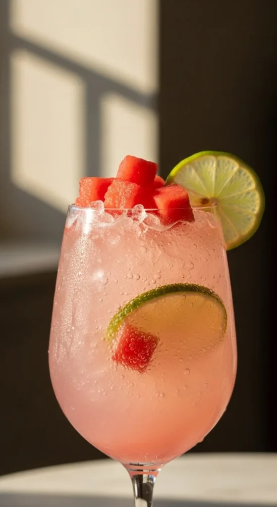 Blend watermelon and strain to remove pulp. Pour over crushed ice and add sparkling water. The ice melts slightly, making the drink light and easy to sip. Watermelon is usually affordable in season, so make this when it’s cheapest. Add mint for a bright touch. Serve immediately so the ice stays fluffy.