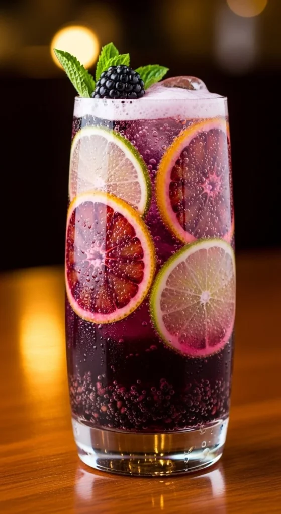 Mash blackberries with a little sugar. Add lemon juice and sparkling water. The mix feels fruity but still sharp. Strain if you want a cleaner drink. Frozen blackberries work perfectly and cost less. Add ice for a stronger chill. A lemon wheel adds a simple garnish. Store the blackberry mash in the fridge for quick refills.