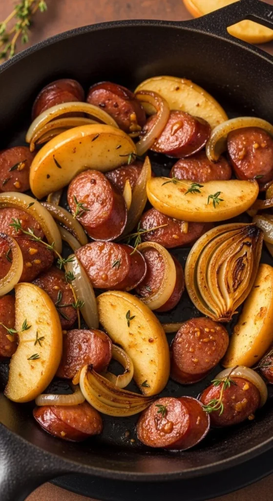 This quick skillet brings sweet and savory flavors together. Use gluten-free sausage and slice into rounds. Cook with onions until golden. Add thin apple slices to soften and glaze. The mix pairs well with rice, potatoes, or a simple salad. If serving a large group, double the recipe and keep warm in the oven. This dish tastes even better the next day, making it practical for leftovers. It also fits tight budgets since you only need a few ingredients. Kids tend to enjoy the sweetness from the apples, making it a crowd-friendly option.