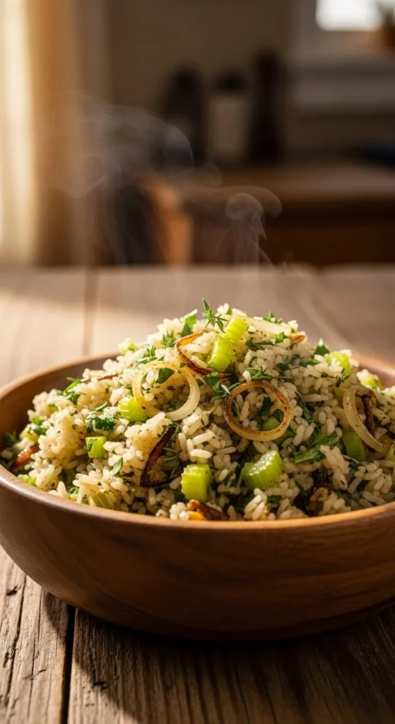 Stuffing often contains gluten, but this rice version solves the problem without expensive mixes. Cook rice the night before for the best texture. Sauté onions, celery, garlic, and herbs until soft. Mix with rice and add broth until the dish turns steamy and fragrant. You can add chopped apples or dried cranberries for sweetness. If you want protein, toss in cooked sausage labeled gluten-free. Bake for a short time to develop a slight crust on top. It’s a flexible side dish that makes everyone feel included. Leftovers serve well as a quick lunch with a fried egg. This bowl stretches far and keeps costs down.
