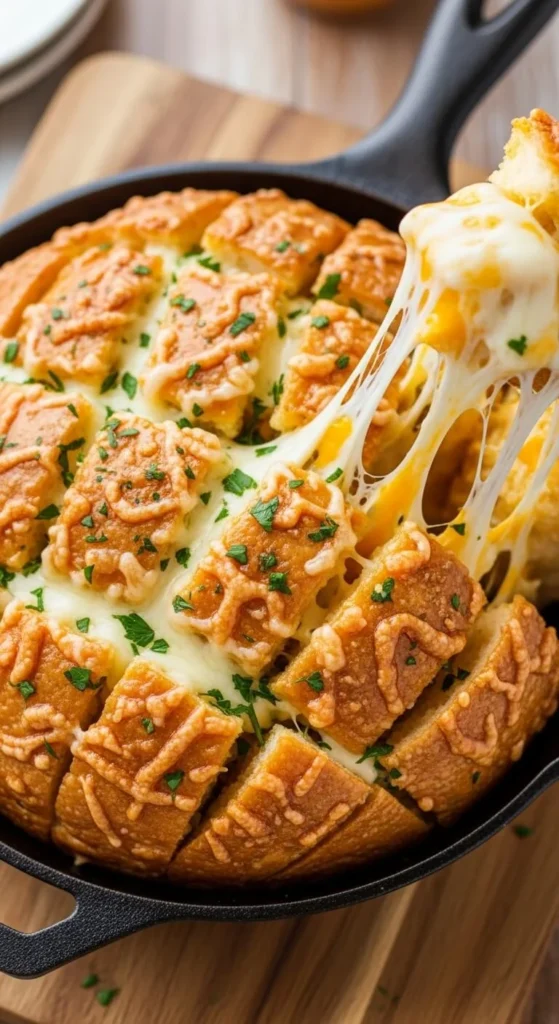 This bread disappears fast. Slice the loaf in a grid pattern, stuff cheese between the cuts, and brush with garlic butter. Bake until melted. It’s cheap and fills the table with warm aromas. Serve it beside pasta or roasted meats. Make two loaves if you expect a crowd.