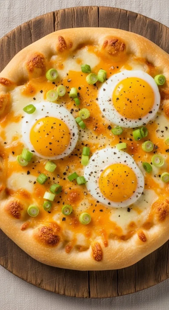 Use flatbread or dough as a base. Add eggs and cheese, then cook until set.