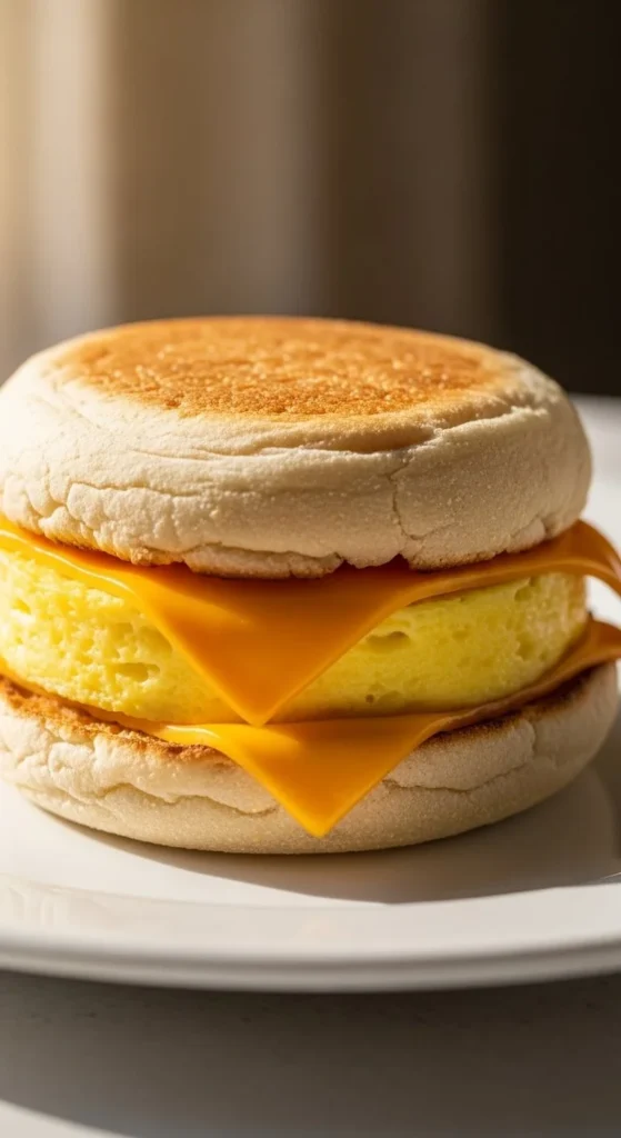 Cook eggs and warm bread in the air fryer. Assemble with cheese and optional meat.