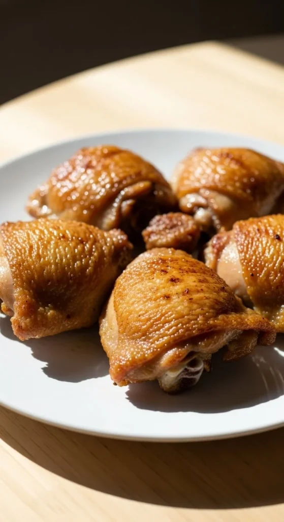 The skin crisps beautifully while the meat stays juicy. Serve with roasted vegetables or a fresh salad. Leftovers reheat well in the air fryer for a second round of crispiness.