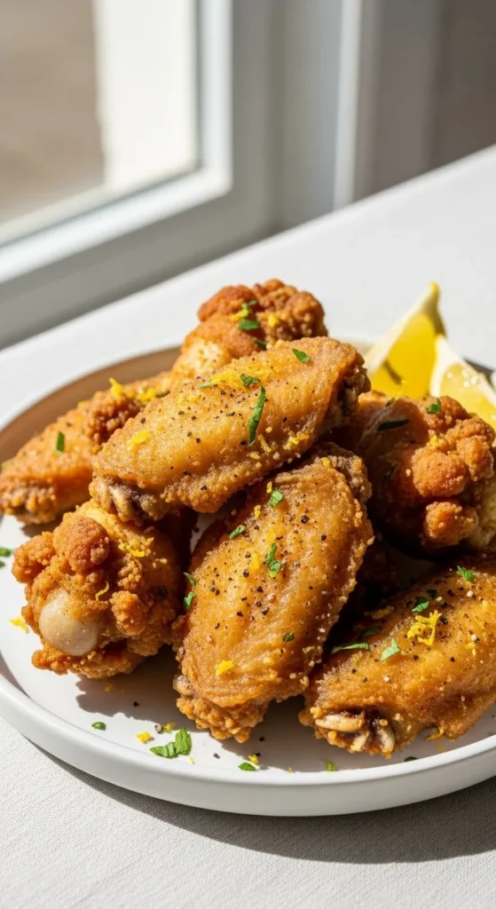 Season wings with lemon zest, black pepper, and oil. Cook at 400°F for 20 minutes.