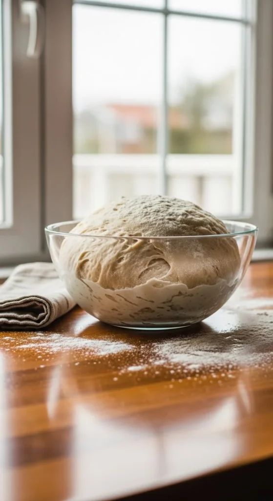 💡 Tip: If your dough sticks too much, sprinkle a little more flour, but don’t overdo it. Too much flour makes bread dense.