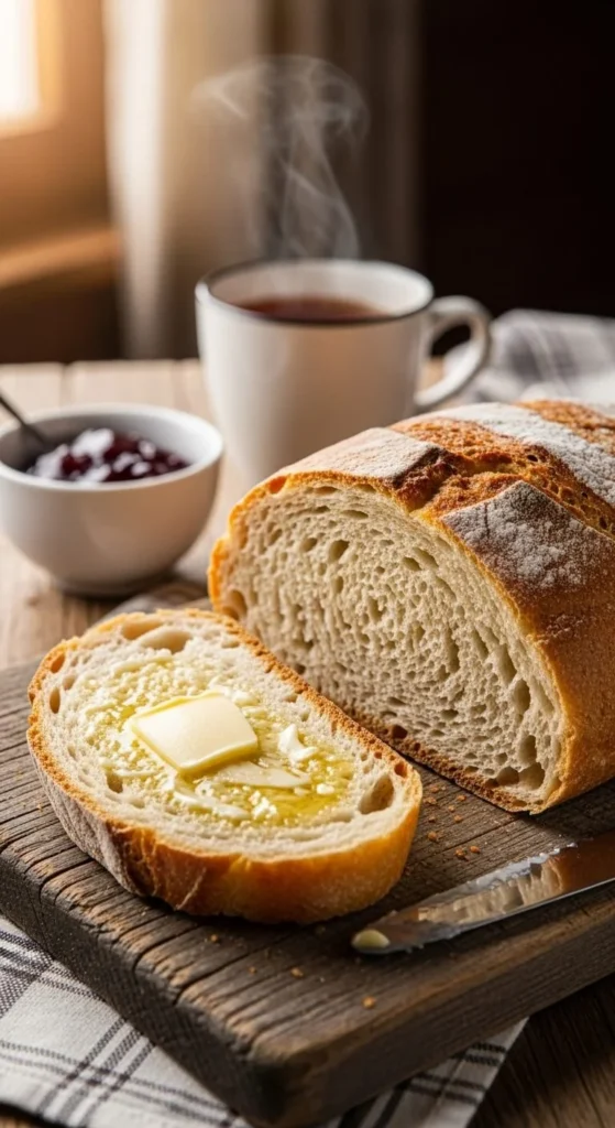 Slice your bread while it’s still slightly warm and spread on butter or jam. It’s perfect for breakfast, sandwiches, or just a cozy snack with tea.