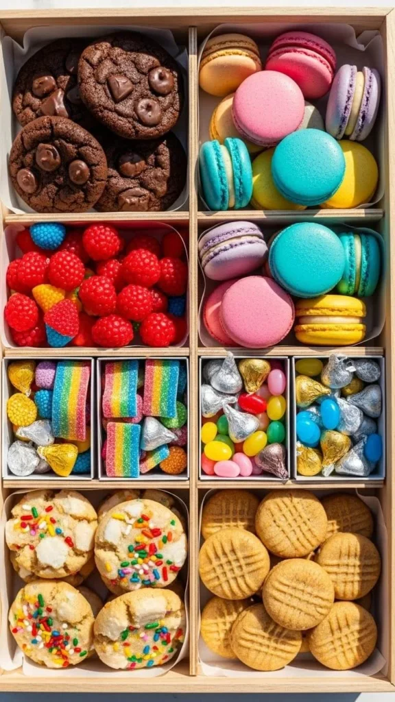 Inside the box, keep things neat with parchment dividers. Choose colorful cookies so the box looks lively. This idea works well for close friends or family who appreciate personal touches.