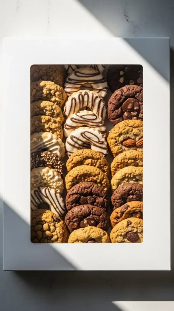 Use strong cookies on the bottom and delicate ones on top. This helps keep everything intact. It’s a great option when you want to give a larger assortment without using multiple boxes.