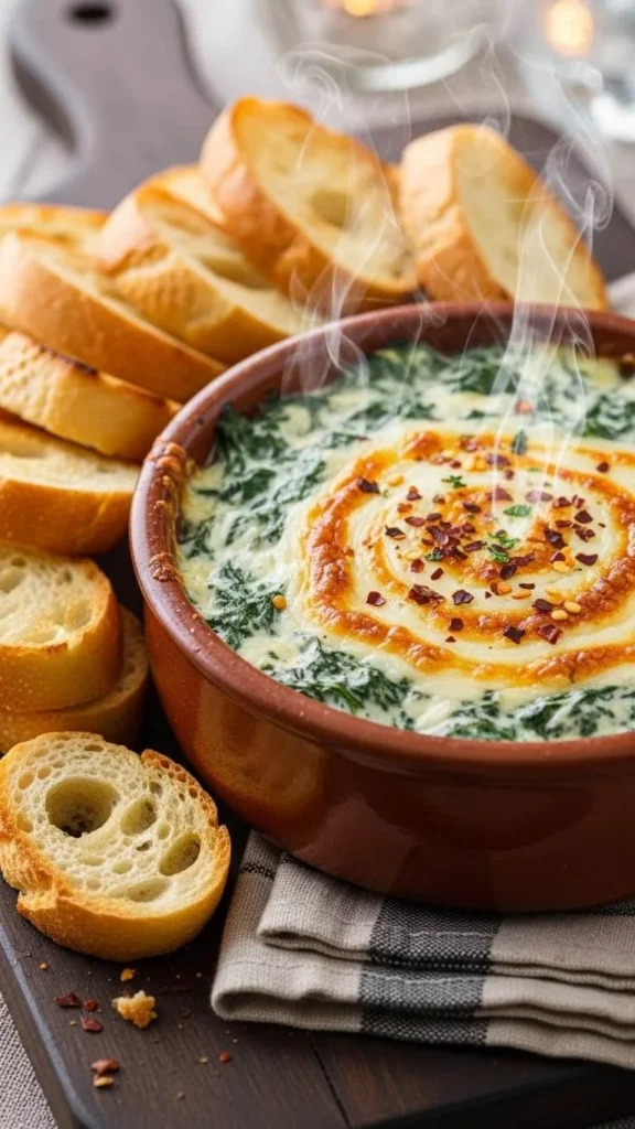 Spinach dip feels cozy on a cold night. Mix cream cheese, spinach, garlic, and a little shredded cheese. Bake until warm and creamy. Serve with toasted bread or chips. Keep it warm in a small slow cooker if you have one. You can stretch the recipe by adding chopped artichokes or extra spinach.