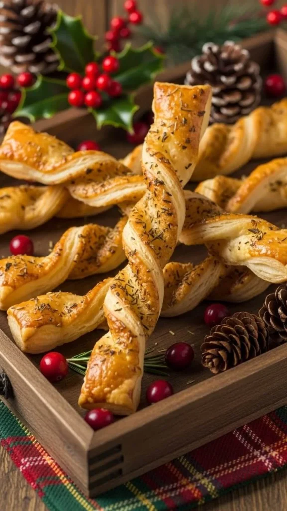 Cut puff pastry into strips, twist, and brush with seasoned butter. Bake until golden. These are easy to hold and great for mingling. Add cheese inside the twists for extra flavor. They work on any table and look impressive without much effort.