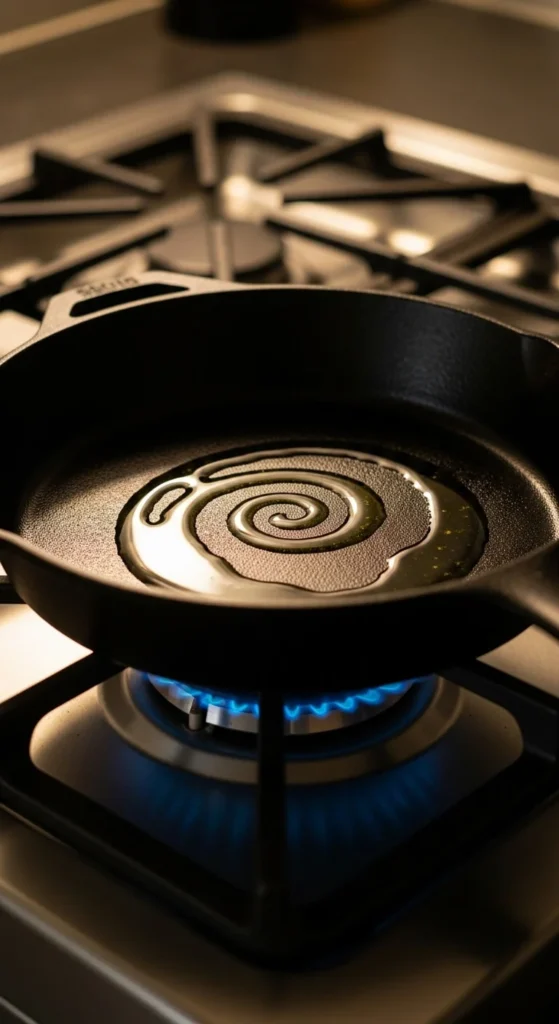 Use an oil with a high smoke point—canola, vegetable, or avocado oil. Add just enough to coat the surface lightly.