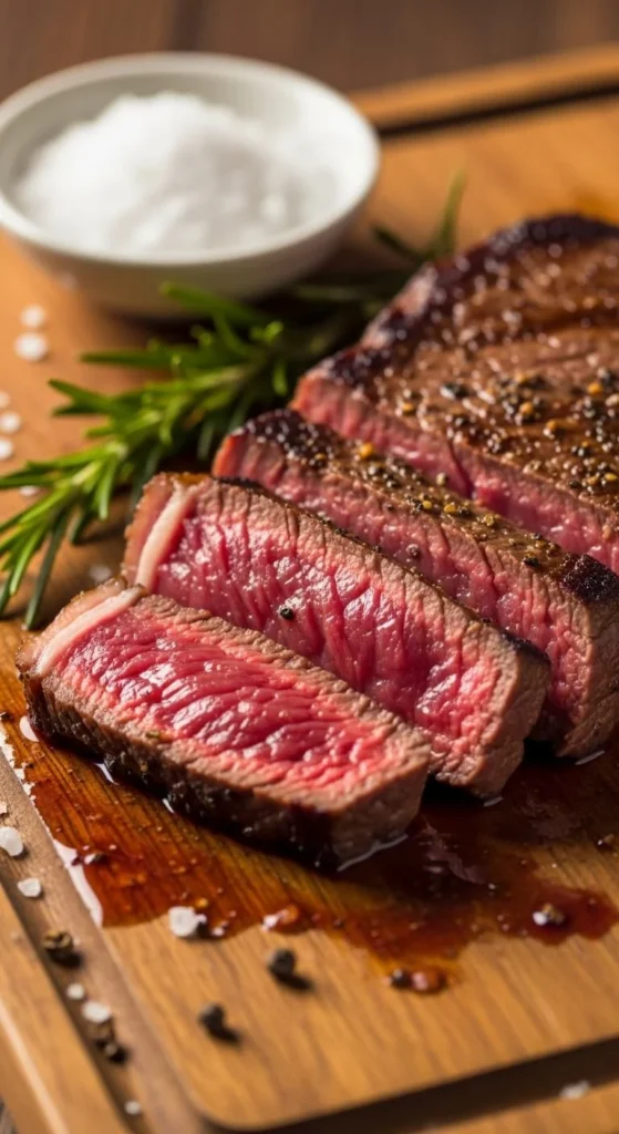 Let the steak rest on your counter for 20–30 minutes. This helps it cook evenly instead of staying cold in the center.