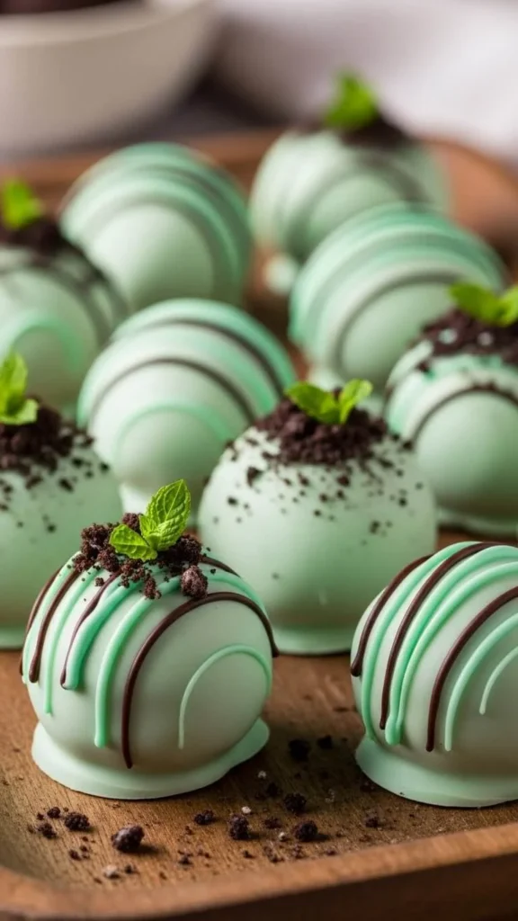 Mint Oreo truffles use crushed cookies and cream cheese. Mix until smooth. Add mint extract and a touch of green coloring from plant powder. Roll into balls. Chill. Dip in melted white chocolate. Let set. For savings, use store-brand sandwich cookies. They work the same. These truffles feel rich. Keep them small. Store in the fridge. They make neat gifts in small boxes.