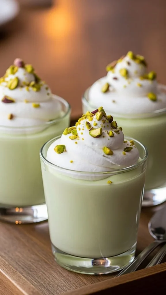 Pistachio pudding cups come together fast. Use instant pudding mix. Chill until set. Top with whipped cream and chopped nuts. For budget swaps, make pudding from scratch with milk, sugar, and cornstarch. Add pistachio paste for color. Serve in small bowls. The green shade feels playful. These cups suit last-minute plans.