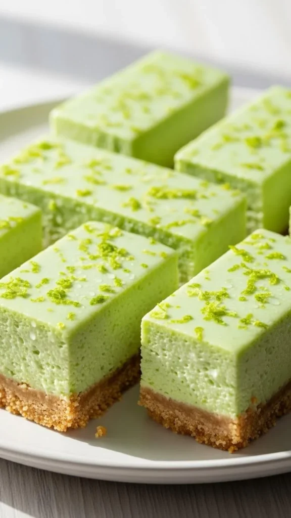 Lime cheesecake bars bring a pale green center. Use cream cheese, sugar, eggs, and lime juice. Bake on a simple crumb crust. Cool fully before cutting. For budget tips, use block cream cheese. It bakes better. Add zest for color. Chill overnight. The bars slice clean. Serve cold for best texture.