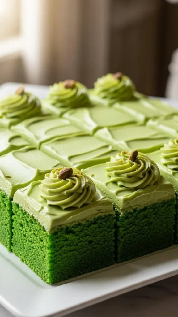 Green velvet sheet cake swaps red coloring for green. Cocoa powder deepens tone. Use vinegar and baking soda for lift. Bake in one pan. Frost simply. For budget tips, skip fancy decorations. A smooth top looks clean. This cake feeds many people. Slice into squares for easy serving.