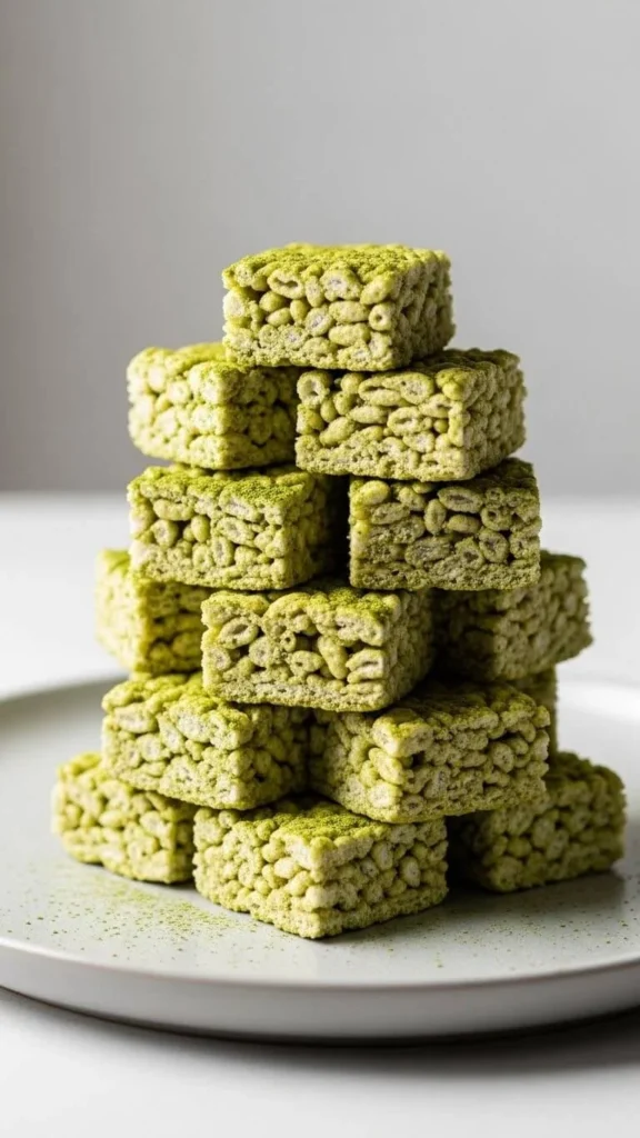 Matcha rice cereal squares mix ease and color. Melt marshmallows with butter. Stir in matcha powder. Fold in cereal. Press into a pan. Let set. Cut into squares. Use less matcha than you think. The flavor builds fast. Culinary grade works well. For budget tips, buy cereal in large bags. These squares travel well. Wrap them individually. They suit bake sales and parties. Add white chocolate chips if you want contrast.