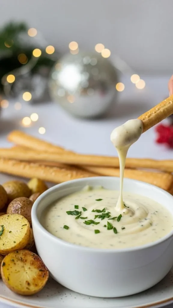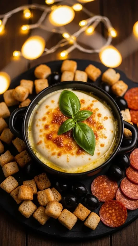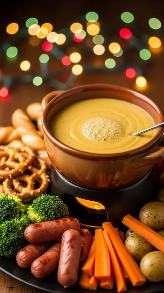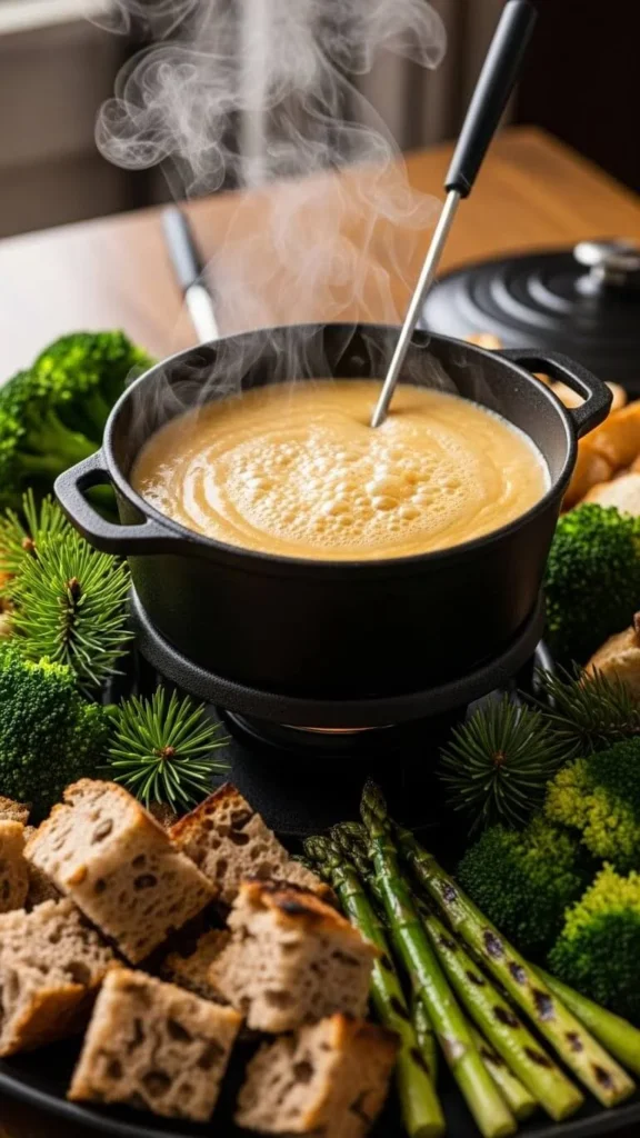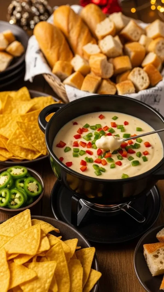 Offer chips, soft bread, or roasted potatoes. Add a bit of broth if it thickens. This fondue works well for game nights or casual family gatherings.