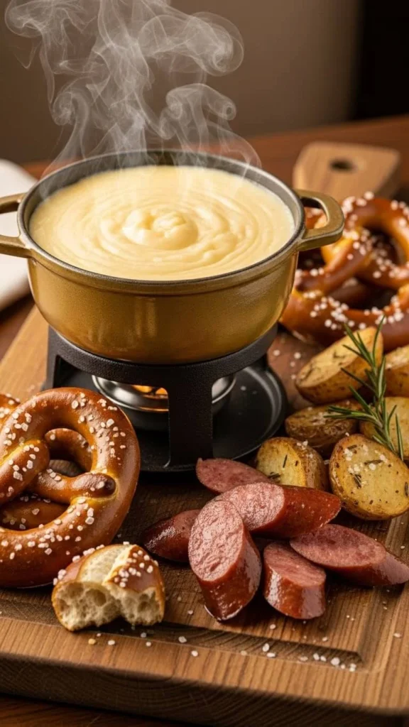 Pair with grilled veggies, toasted baguette, or simple crackers. Add paprika for color. This fondue works well for small gatherings because the flavor feels rich without being heavy. Rewarm gently when needed.