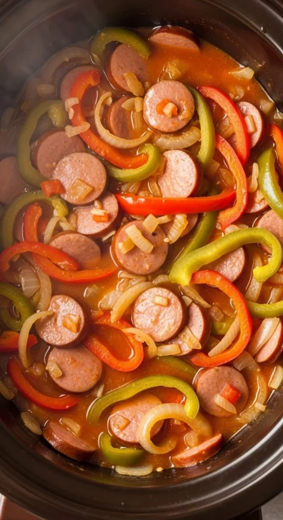 This dish works for dinner or sandwiches. Slice the sausage or keep links whole. Add peppers, onions, and a jar of marinara or broth. Let it cook until the vegetables soften. Serve with rolls or pasta. Use store-brand sausage to reduce cost. This stays warm for hours on a buffet table.