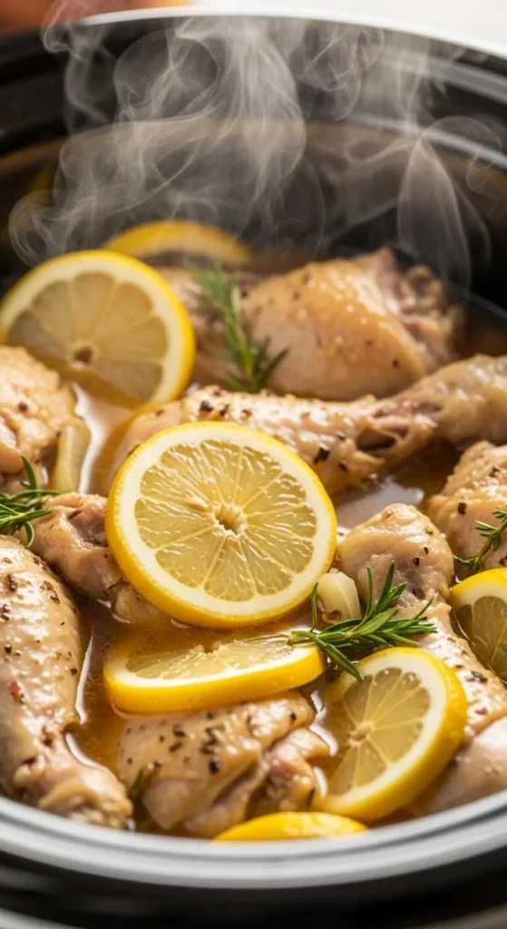 This dish tastes bright and simple. Place chicken thighs or breasts in the cooker with lemon slices and herbs. The chicken stays tender without much work. Serve with potatoes or rice. Use dried herbs to keep it affordable. Save the broth for soup or gravy.