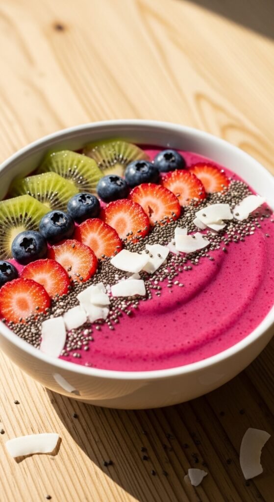 There’s something magical about a smoothie bowl that looks almost too pretty to eat. The vibrant colors. The perfectly placed fruit slices. The sprinkle of seeds that makes everything pop. It’s breakfast — but make it art.