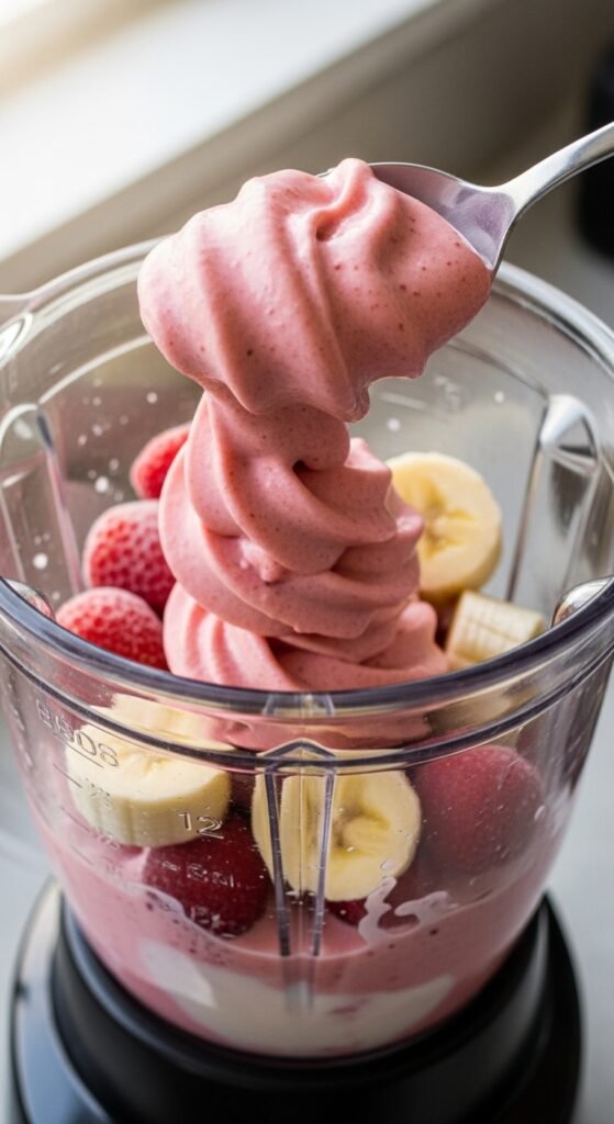 Pro tip: If it blends too easily, it’s probably too thin. Add more frozen fruit.