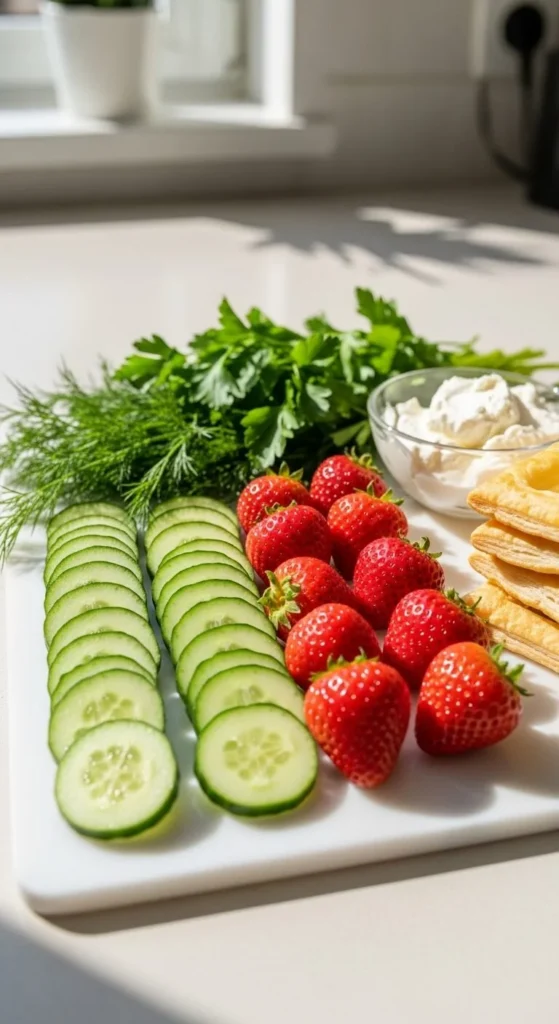 - Thinly sliced cucumbers
