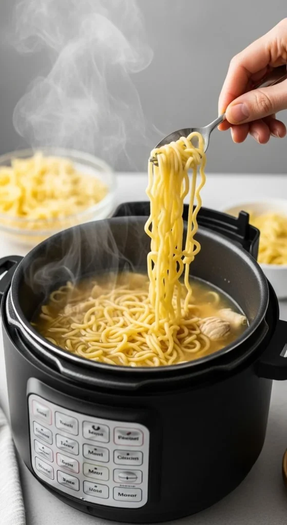 Add noodles and pressure cook briefly.