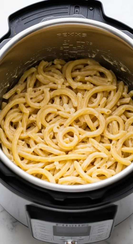 Press cook for half the pasta box time. Quick release. Stir in milk or cream.