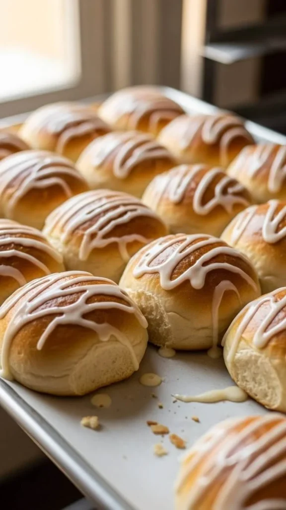 Vanilla buns are soft and lightly sweet. Yeast dough with simple icing.