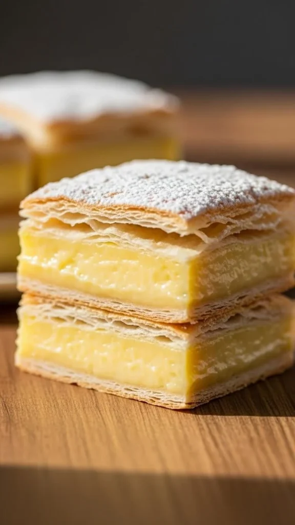 Custard slice layers pastry and cream. Use ready pastry to save time.
