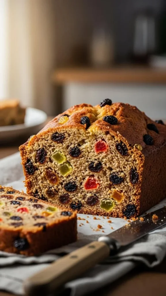 Mix soaked fruit into a simple batter. Bake in a loaf pan. The result is moist and gently sweet. No frosting needed.
