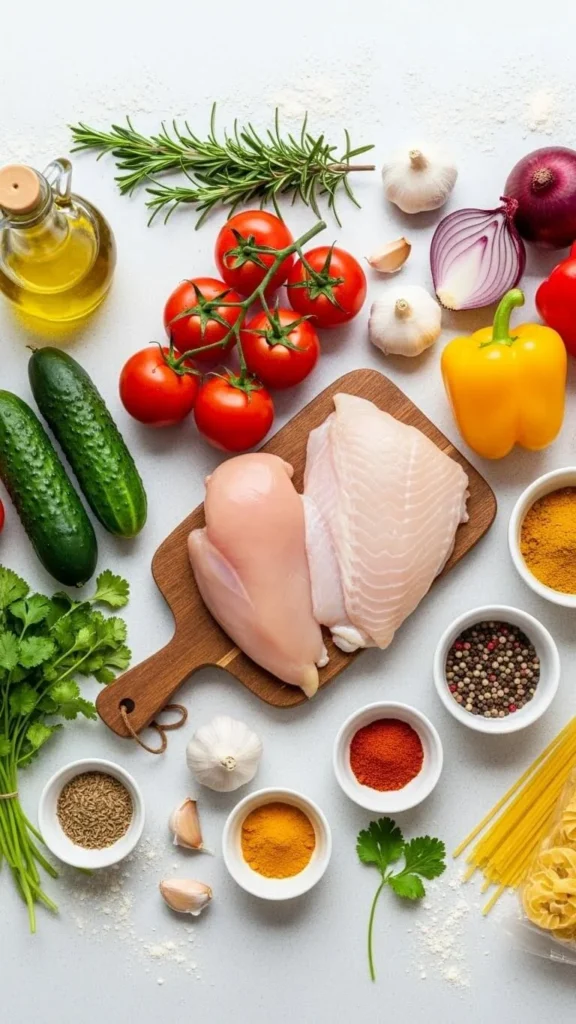 • Main: Creamy pasta, grilled chicken, baked fish, or vegetable stir-fry
