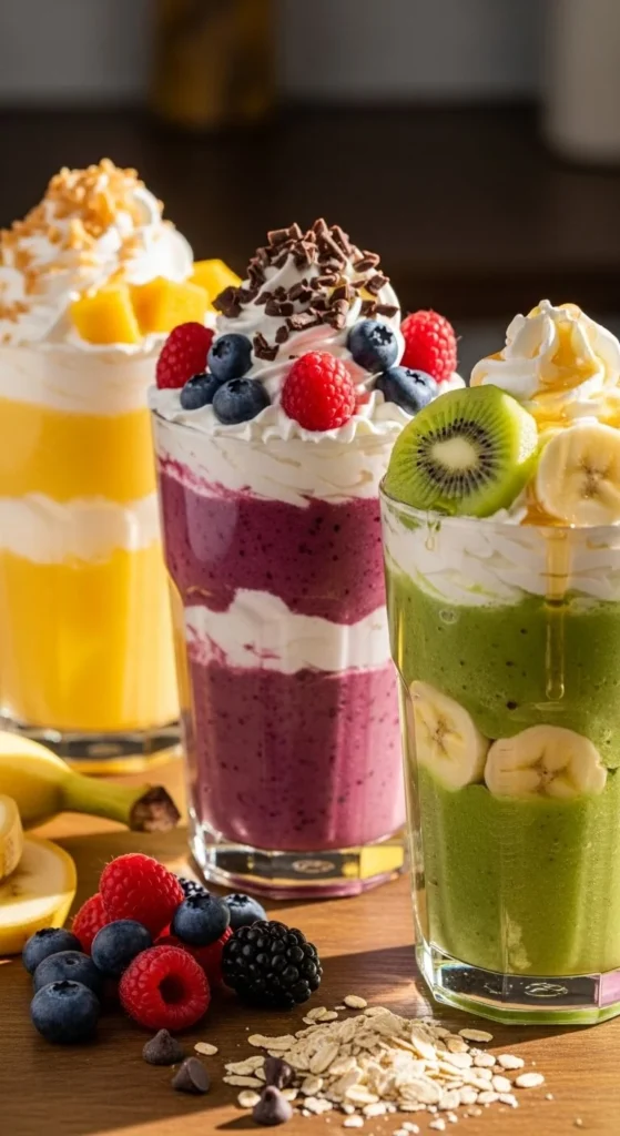 Here’s where the magic happens. Dessert smoothies taste indulgent because of flavor layering — simple ingredients that remind you of treats you already love.