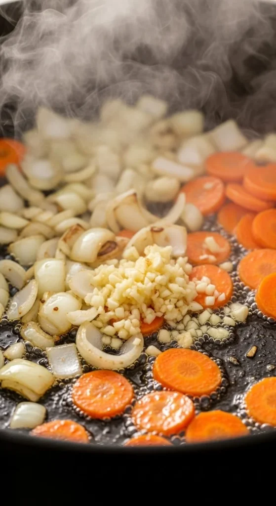 This step is called “sweating” the vegetables — it releases their natural sweetness and builds a foundation of flavor.