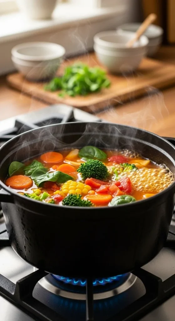 Let it simmer for 20–40 minutes, depending on your ingredients. Taste as you go and adjust seasoning with salt, pepper, or a dash of chili flakes if you like a kick.