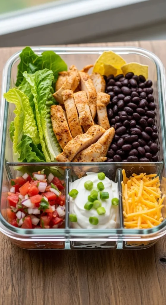 Store lettuce, seasoned chicken, beans, and corn separately.