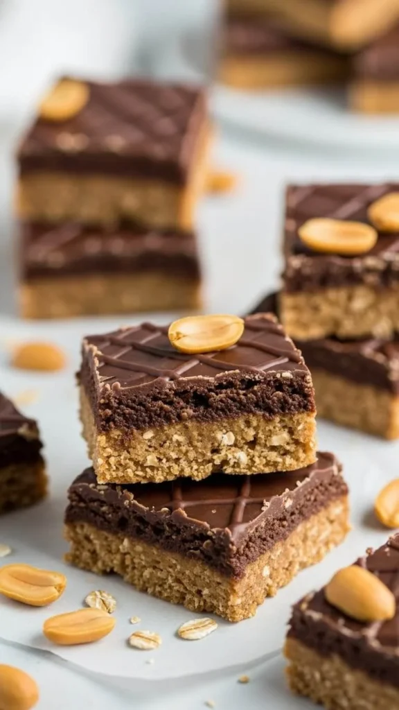 These bars rely on pantry staples. Mix oats, peanut butter, honey, and cocoa powder in a bowl. Press the mixture into a lined tray. Smooth the top with a spoon. Chill until firm, then cut into bars.