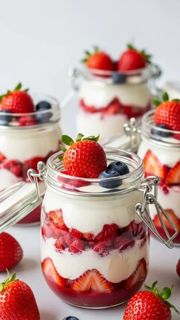 These jars feel light and balanced. They suit breakfast-style desserts or evening treats. Prep them early and keep chilled until serving time.