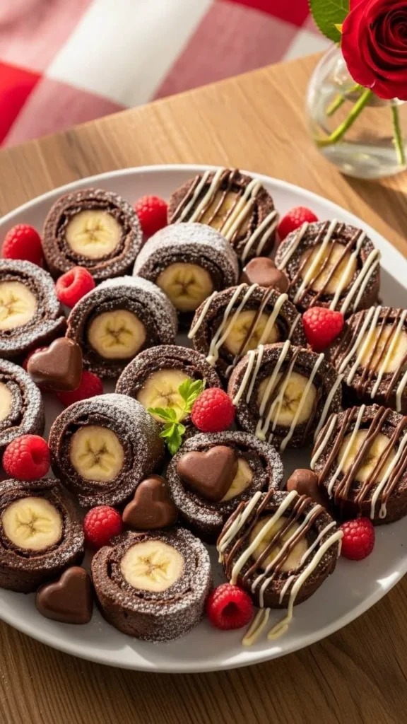 Chocolate banana roll-ups feel playful and quick. Spread melted chocolate on flatbread or thin crepes. Place a banana on one end and roll tightly. Chill for ten minutes, then slice.