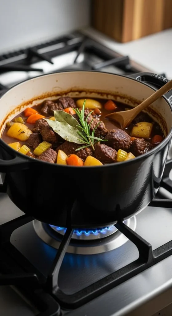 The stew thickens as it cooks.