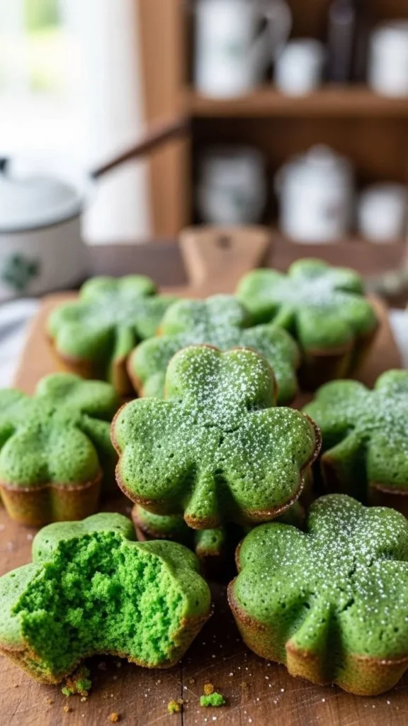 Bake muffin batter in shamrock molds or shape gently on a pan. Focus on the tops for a soft bite.